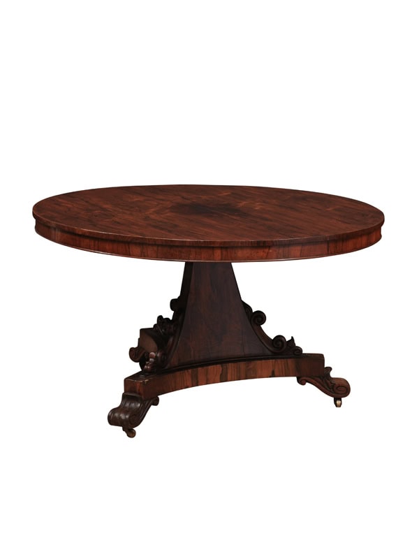 Early 19th Century French Empire Walnut Gueridon / Center Table with Grey Marble Top & Ormolu Detail